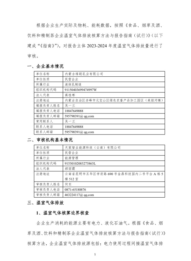 维聪乳业温室气体第三方核查报告
